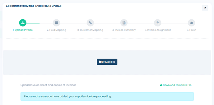 - To upload your saved file, click on the Browse File icon (illustrated below) to upload your completed invoice template.