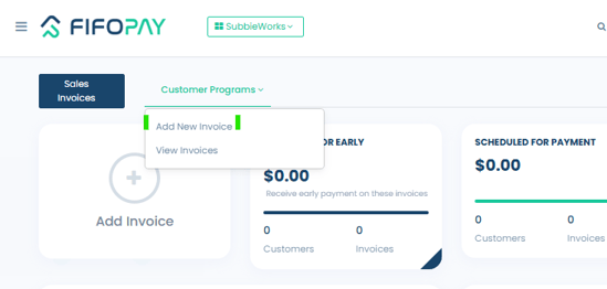 Once logged into Fifopay, simply use the "Add Invoice" button and follow the steps.