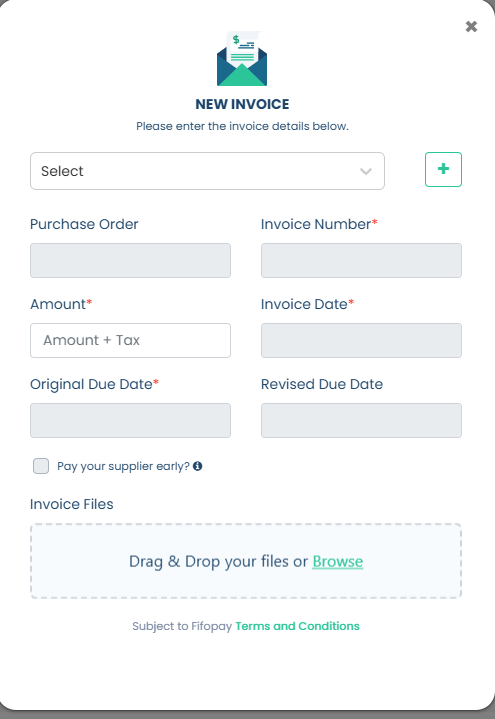 Select a Supplier: Choose the appropriate supplier from the list. If the supplier is not available, please refer to the guide on "Adding a New Supplier on Fifopay" to add a new one.