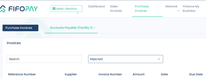 You will be able to view any rejected Invoice in the “View Invoices” area of your system dashboard. You will be able to apply a "Rejected Invoices" filter.