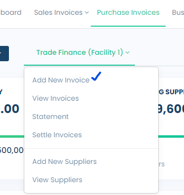 Where and how to add a new supplier invoice for payment, then extend terms in your Trade Finance facility