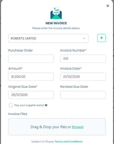 Adding a supplier invoice and extending your terms in Fifopay is easy! Just follow these simple steps below to get started, or watch this short video.